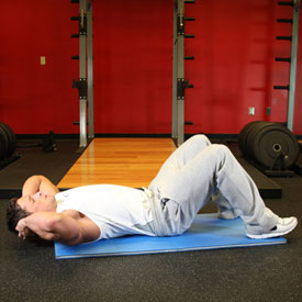 1. Lay on your back with your feet flat on the floor, your knees bent at a 90 degree angle